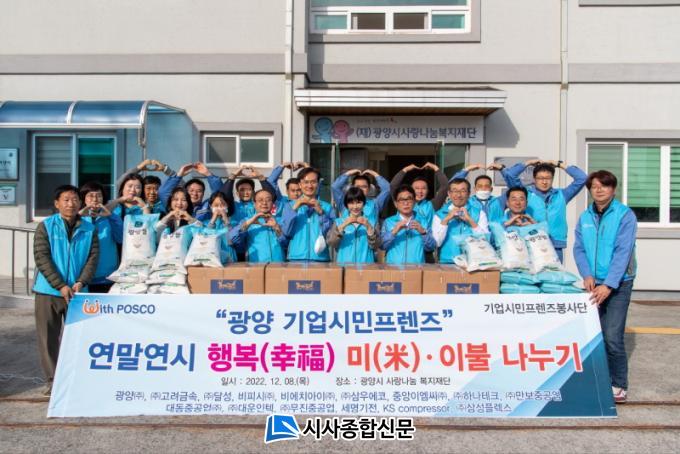 ÇÑÆí, ±¤¾çÁ¦Ã¶¼Ò´Â ¿¬¸»À» ¸Â¾Æ ±èÄ¡ 3600Æ÷±â¸¦ Áö¿ª º¹Áö´Üü¿¡ Àü´ÞÇϰí Àü³²µå·¡°ïÁî¿Í Çù¾÷ÇÏ¿© ½Ò4440kg(220Æ÷´ë)¸¦ ¹«·á±Þ½Ä¼Ò, ¿ä¾ç¿ø, º¹Áö°ü µî¿¡ Àü´ÞÇÏ´Â µî ¿ª»çȸ¿Í »ó»ý¡¤°øÁ¸Çϱâ À§ÇØ ±â¾÷°ú »çȸ°¡ ÇÔ²² ¹ßÀüÇÏ´Â ¸ðµ¨À» Á¦½ÃÇÏ´Â Community with POSCO(Áö¿ª»çȸ¿Í ÇÔ²² Çϴ ȸ»ç) ½ÇÇöÀ» À§ÇØ Àû±Ø ³ë·Â ÁßÀÌ´Ù.
