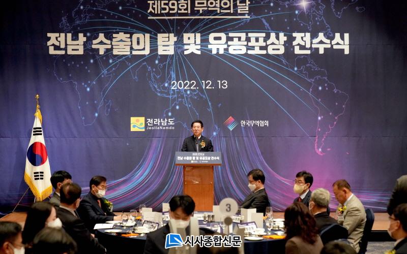 Çѱ¹¹«¿ªÇùȸ ±¤ÁÖÀü³²Áö¿ªº»ºÎ ÁÖ°üÀ¸·Î °³ÃÖÇÑ À̳¯ Çà»ç¿¡´Â ±è¿µ·Ï Àü³²µµÁö»ç, ÀåÃá»ó ±¤ÁÖÀü³²±â¾÷ÇùÀÇȸÀå, ÀÌÇöÁ¶ ±¤ÁÖÀü³²Áö¹æÁß¼Òº¥Ã³±â¾÷ûÀå, À̱ÇÀç Çѱ¹¹«¿ªÇùȸ ±¤ÁÖÀü³²Áö¿ªº»ºÎÀå, À̼ºÈñ Àü³²µµÁß¼Ò±â¾÷ÀÏÀÚ¸®°æÁ¦ÁøÈï¿øÀå µîÀÌ Âü¼®ÇØ ¾î·Á¿î °æÁ¦ ¿©°Ç¿¡¼ ¼öÃâžÀ» ¼ö»óÇÑ ±â¾÷°ú À¯°øÀÚ¿¡°Ô ÃàÇÏ¿Í °¨»çÀÇ ¸¶À½À» ÀüÇß´Ù.