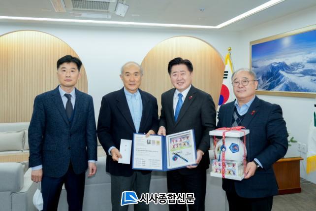 ¿À¿µÈÆ Áö»ç´Â À̳¯ ¿ÀÀü 11½Ã Áý¹«½Ç¿¡¼ ¾çÀ챂 ÁöºÎÀåÀ¸·ÎºÎÅÍ Å©¸®½º¸¶½º ¾Á°ú ±×¸° ¾Á(۸µ)À» ÁõÁ¤ ¹Þ°í, °áÇÙ ÅðÄ¡ ¼º±ÝÀ» Àü´ÞÇß´Ù.