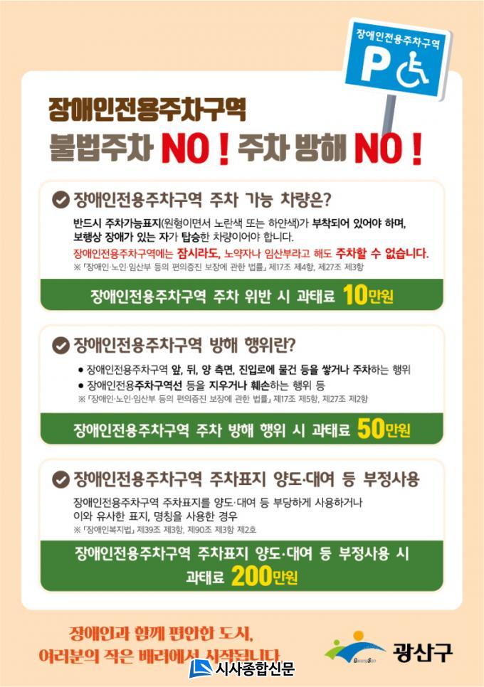 ¡®ÁÖÂ÷°¡´ÉÇ¥Áö¡¯ ¾øÀÌ Àå¾ÖÀÎÀü¿ëÁÖÂ÷±¸¿ª¿¡ ÁÖÂ÷ÇÑ ÇàÀ§, Àå¾ÖÀÎÀü¿ëÁÖÂ÷±¸¿ª ÀÌ¿ëÀ» ¹æÇØÇϰųª ºÎÁ¤ »ç¿ëÇÑ ÇàÀ§ µîÀ» »ìÇǰí, À§¹Ý »çÇ× È®ÀÎ ½Ã °úÅ·Ḧ ºÎ°úÇÒ ¹æÄ§ÀÌ´Ù.