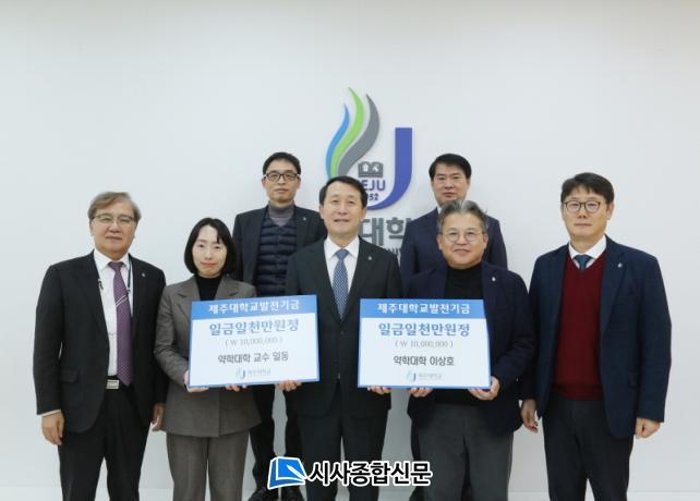 [½Ã»çÁ¾ÇսŹ® = °í¼º¹Î ±âÀÚ] Á¦ÁÖ´ëÇб³ ¾àÇдëÇÐ ÀÌ»óÈ£ ÇÐÀåÀ» ºñ·ÔÇÑ ¾àÇаú ±³¼öµéÀÌ 13ÀÏ ´ëÇÐ ¹ßÀü±â±ÝÀ¸·Î 2000¸¸¿øÀ» ±âŹÇß´Ù.