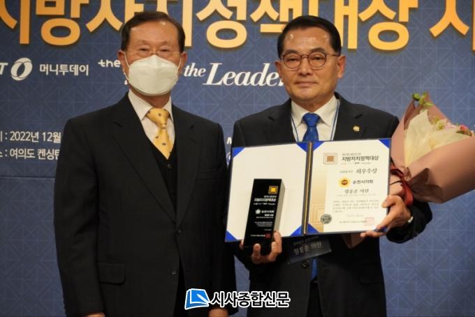 Á¤È«ÁØ ÀÇ¿øÀº¡°¼øÃµ½ÃÀÇȸ ÀÇ¿ø ¸ðµÎ°¡ ½Ã¹ÎµéÀ» À§ÇØ ÀÇÁ¤È°µ¿À» ¼öÇàÇϰí Àֱ⿡ À̹ø ¼ö»óÀº ¼øÃµ½ÃÀÇ¿ø ¸ðµÎÀÇ °ø·Î¡±¶ó°í Çϸç, ¡°¾ÕÀ¸·Îµµ ÀÏÇÏ´Â ÀÇȸ, °ÇÑ ÀÇȸ, ½Å·Ú¹Þ´Â ÀÇȸ¸¦ ½ÇÇöÇϱâ À§ÇØ ½Ã¹ÎµéÀÇ ¸ñ¼Ò¸®¿¡ ±Í ±â¿ïÀ̸ç ÇൿÇÏ´Â ÀÇÁ¤È°µ¿À» ÆîÃijª°¥ °Í¡±À̶ó°í ¼Ò°¨À» ¹àÇû´Ù.