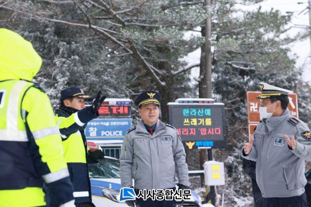 [½Ã»çÁ¾ÇսŹ® = °í¼º¹Î ±âÀÚ] ÀÌ»ó·ü Á¦ÁÖ°æÂûûÀåÀº, Áö³ 17ÀϺÎÅÍ Á¦ÁÖÁö¿ª¿¡ ´ë¼³Æ¯º¸°¡ ¹ßÈ¿µÊ¿¡ µû¶ó ¸¹Àº ´«ÀÌ ³»¸®¸é¼ Á߻갣µµ·Î »Ó¸¸ ¾Æ´Ï¶ó ½Ã³»±Ç µµ·Î±îÁö ÅëÁ¦µÊ¿¡ µû¶ó, 18ÀÏ(ÀÏ) ¿ÀÀü°æ 1100µµ·Î¿Í 516µµ·Î µî ÁÖ¿ä µµ·Î¿Í Áö¿ª°æÂû°ü¼, °øÇ×°æÂû´ë µîÀ» ¹æ¹®ÇÏ¿© ±Ù¹«»óȲÀ» Á¡°ËÇÏ°í ±Ù¹«ÀÚµéÀ» °Ý·ÁÇÏ¿´´Ù.