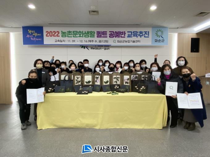 À̹ø ±³À°Àº Áö¿ª ¿©¼ºµéÀ» ´ë»óÀ¸·Î »ýȰ¹®È º¸±ÞÀ» ÅëÇÑ ±º¹ÎÀÇ ¹®È ÇâÀ¯ ¿å±¸ ÇØ¼Ò¿Í ³ó¾÷ÀÎ »îÀÇ Áú Çâ»óÀ» À§ÇØ ¸¶·ÃµÆ´Ù. Áö³ 11¿ùºÎÅÍ 12ȸ¸¦ ¿î¿µÇϸç 23¸íÀÇ ¼ö°»ýÀÌ ±³À° °úÁ¤À» ¼ö·áÇß´Ù. À̳¯ ¼ö·á½ÄÀº ¾ß»ýÈ ÆÄƼ¼Ç, Å䯮¹é, ÆÄ¿ìÄ¡ µî ±³À°»ýµéÀÌ ¿Ï¼ºÇÑ ÀÛǰ¿¡ ´ëÇÑ ÃÑÆò, ±³À° ¼Ò°¨, ¼ö·áÁõ Àü´Þ ¼øÀ¸·Î ÁøÇàµÆ´Ù.