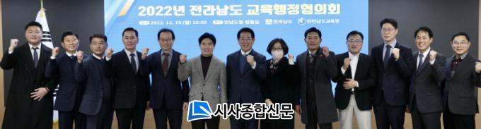 µÎ ±â°üÀº 19ÀÏ(¿ù) Àü³²µµÃ» Á¤Ã¶½Ç¿¡¼ ±è¿µ·Ï µµÁö»ç¿Í ±è´ëÁß ±³À°°¨À» ºñ·ÔÇÑ ÁÖ¿ä °£ºÎµé°ú ÇùÀÇȸ À§¿øÀÌ Âü¼®ÇÑ °¡¿îµ¥ ¡®2022³âµµ Àü¶ó³²µµ±³À°ÇàÁ¤ÇùÀÇȸ¡¯¸¦ °®°í, ¾Æµ¿¡¤Ã»¼Ò³â Áß Áö¿øÀÌ Àý½ÇÇÑ °èÃþ Áö¿ø°ú Áö¿ª Ư¼ºÀ» °í·ÁÇÑ ±³À° °È¸¦ À§ÇØ Çù·ÂÀÌ ÇÊ¿äÇÏ´Ù´Â µ¥ ÀνÄÀ» °°ÀÌÇß´Ù.