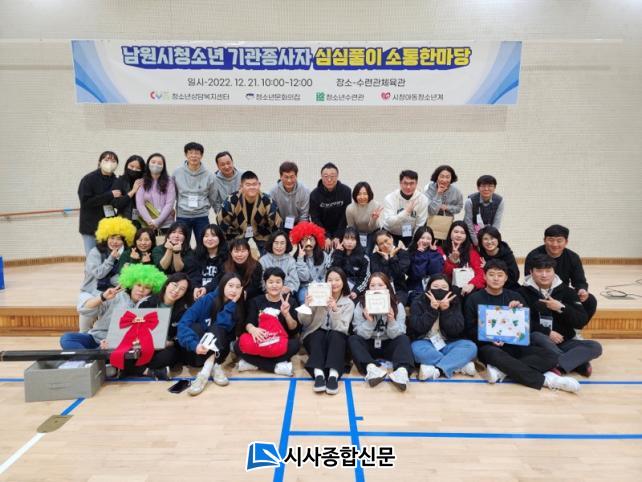 À̳¯ Çà»ç¿¡´Â ³²¿ø½Ã ¿©¼º°¡Á·°ú ¾Æµ¿Ã»¼Ò³âÆÀ 9¸í°ú û¼Ò³âÀ§Å¹±â°ü Á¾»çÀÚ 33¸í(³²¿ø½Ãû¼Ò³â¼ö·Ã°ü 12¸í, ³²¿ø½Ãû¼Ò³â¹®ÈÀÇÁý 9¸í, ³²¿ø½Ãû¼Ò³â»ó´ãº¹Áö¼¾ÅÍ 12¸í) ÃÑ 4°³ ±â°üÀÇ 42¸í Á÷¿øµéÀÌ ¸ð¿© ³²¿ø½Ã û¼Ò³âµéÀ» À§ÇÑ ±³·ù¿Í ¼ÒÅëÀÇ ½Ã°£À» °¡Á³´Ù.