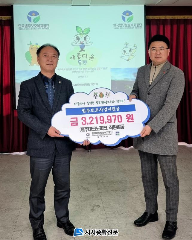 [½Ã»çÁ¾ÇսŹ® = °í¼º¹Î ±âÀÚ] Á¦ÁÖÅ×Å©³ëÆÄÅ©(¿øÀåÁ÷¹«´ëÇà ·ù¼ºÇÊ, JTP)Àº 20ÀÏ Çѱ¹¹ý¹«º¸È£º¹Áö°ø´Ü Á¦ÁÖÁöºÎ¸¦ ¹æ¹®ÇØ ¼º±Ý 3,219,970¿øÀ» Àü´ÞÇß´Ù.