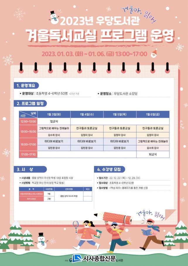 ¡®2023³â °Ü¿ïµ¶¼±³½Ç¡¯Àº ±¹¸³¾î¸°ÀÌû¼Ò³âµµ¼°ü°ú ¿¬°èÇÏ¿© 1¿ù 3ÀϺÎÅÍ 1¿ù 6ÀϱîÁö 4Àϰ£ ¿î¿µµÇ¸ç ÃÑ 3°³ÀÇ Å׸¶·Î ±¸¼ºÇß´Ù.
