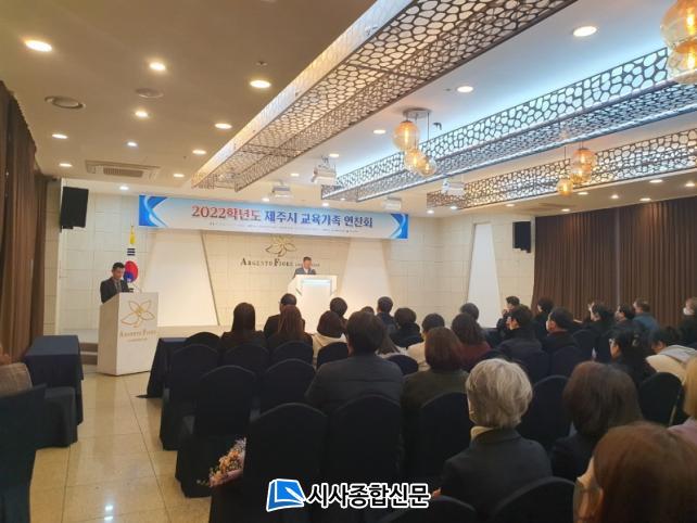 [½Ã»çÁ¾ÇսŹ® = °í¼º¹Î ±âÀÚ] 2022Çг⵵ Á¦ÁÖ½ÃÇб³¿î¿µÀ§¿øÀåÇùÀÇȸ(ȸÀå °°æÈÆ) ÁÖ°üÀ¸·Î¡¸2022Çг⵵ Á¦Áֽà ±³À°°¡Á· ¿¬Âùȸ¡¹°¡ 12¿ù 21ÀÏ ¾ÆÁ¨ÅäÇÇ¿À·¹ÄÁº¥¼Ç¿¡¼ Á¦Áֽà °ü³» À¯Ä¡¿ø ¹× °¢±Þ Çб³ ¿î¿µÀ§¿ø, Çкθðȸ ¹× ±³À°°¡Á· 300¿© ¸íÀÌ Âü¼®ÇÑ °¡¿îµ¥ °³ÃÖÇß´Ù.