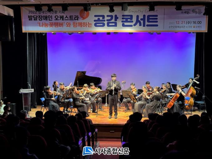 ƯÈ÷ ¼øÃµ½Ã¸³ÇÕâ´Ü°ú ¹ß´ÞÀå¾ÖÀÎ ¿ÀÄɽºÆ®¶ó ´Ü¿øÀÌ ¼ÕÀ» ¸ÂÀâ°í ¡®¹Ù¶÷ÀÌ ¸Ó¹«´Â ³¯¡¯À» ÇÔ²² ºÎ¸¥ ¹«´ë´Â Àå¾Ö¸¦ ³Ñ¾î À½¾ÇÀ¸·Î Çϳª µÇ´Â ¸ð½ÀÀ¸·Î ±íÀº °¨µ¿À» ¼±»çÇß´Ù.