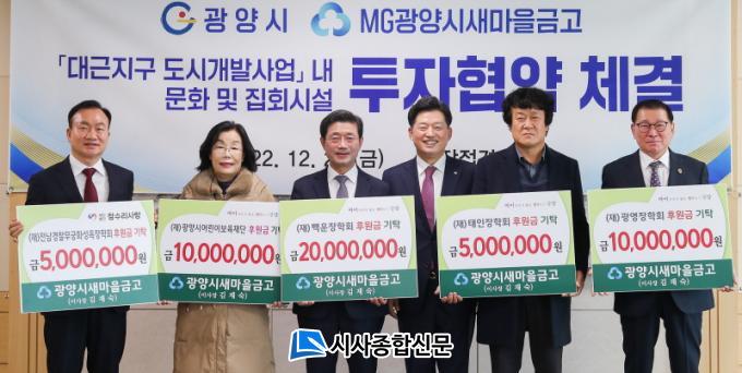 ±âŹ½Ä¿¡¼´Â ±¤¾ç½Ã MG»õ¸¶À»±Ý°í¿¡¼ ±¤¾ç½Ã¹ÎÀ» À§ÇÑ ÀåÇС¤º¸À°»ç¾÷¿¡ »ç¿ëÇϵµ·Ï ÃÑ 5õ¸¸ ¿øÀÇ ±âʱÝÀ» Àü´ÞÇß´Ù.