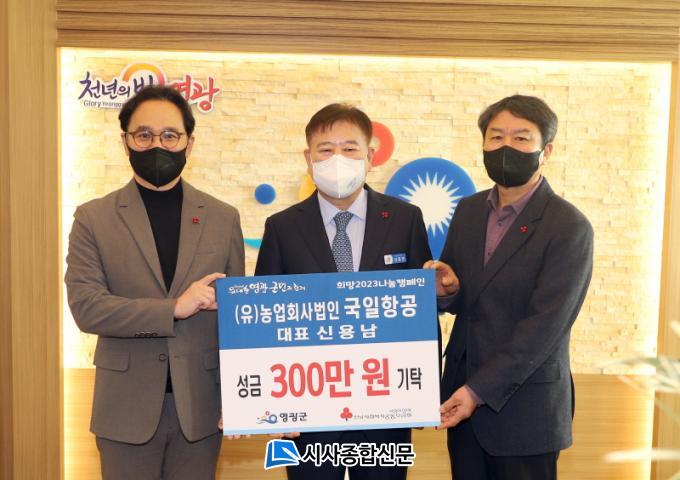 [½Ã»çÁ¾ÇսŹ® = ¿À½ÂÅà ±âÀÚ] ÀÌ¿ôµ½±â¼º±Ý Àü´Þ(À¯)³ó¾÷ȸ»ç¹ýÀÎ ±¹ÀÏÇ×°ø½Å¿ë³² ´ëÇ¥´Â Áö³ 19ÀÏ ¿µ±¤±ºÃ»À» ¹æ¹®ÇØ Àú¼Òµæ ¼Ò¿Ü°èÃþÀ» À§ÇÑ ÀÌ¿ôµ½±â ¼º±Ý 300¸¸¿øÀ» ±âŹÇÏ¸ç ¡®Èñ¸Á2023³ª´®Ä·ÆäÀΡ¯¿¡ µ¿ÂüÇß´Ù.