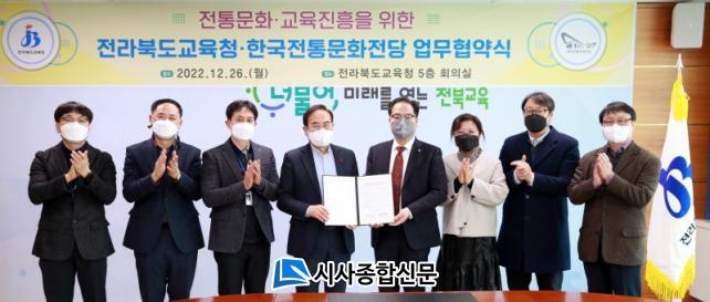 Àü¶óºÏµµ±³À°Ã»°ú Çѱ¹ÀüÅë¹®ÈÀü´çÀº 26ÀÏ µµ±³À°Ã» ȸÀǽǿ¡¼ ÀÌ·± ³»¿ëÀ» °ñÀÚ·Î ÇÑ ¡®ÀüÅ빮ȡ¤±³À° ÁøÈïÀ» À§ÇÑ ¾÷¹«Çù¾à¡¯À» ü°áÇß´Ù.