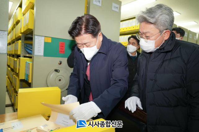¿ª´ë µµÁö»ç·Î¼´Â ÃÖÃÊ·Î ÁöÇϹ®¼°í¸¦ ¹æ¹®ÇÑ ¿À¿µÈÆ Áö»ç´Â °Ã¶³² Á¦ÁÖµµÀÇȸ ÇàÁ¤ÀÚÄ¡À§¿øÀå°ú ÇÔ²² º¸Á¸½Ã¼³°ú ±â·Ï¹°À» »ìÆìº¸¸ç, ±â·Ï¹°°ü¸®¿¡ ´ëÇÑ ÀÎÇÁ¶ó¸¦ È®ÀÎÇß´Ù.