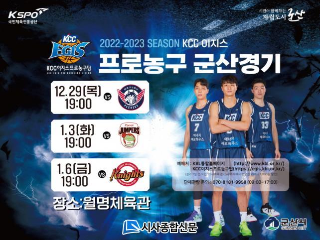KCCÀÌÁö½º ÇÁ·Î³ó±¸´ÜÀÇ Á¦2 ¿¬°íÁöÀÎ ±º»ê¿¡¼´Â ÃÑ 3°æ±â°¡ ÁøÇàµÇ¸ç ù °æ±â´Â ¿À´Â 29ÀÏ 19½Ã KCCÀÌÁö½º¿Í ´ë±¸ Çѱ¹°¡½º°ø»çÀÇ °æ±â·Î ¸·À» ¿Ã¸°´Ù. ÀÌ¾î ³»³â 1¿ù 3ÀÏ 19½Ã °í¾ç ij·Ô, 1¿ù 6ÀÏ 19½Ã ¼¿ï SK¿Í ¸ÂºÙ´Â´Ù.