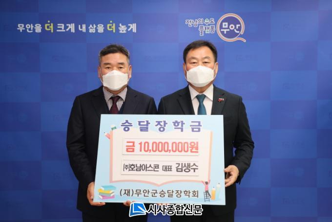 [½Ã»çÁ¾ÇսŹ® = ¿À½ÂÅà ±âÀÚ] ¹«¾È±º(±º¼ö ±è»ê)Àº Áö³ 27ÀÏ ¹«¾È±º Çö°æ¸é¿¡ ¼ÒÀçÇÑ ¢ßÈ£³²¾Æ½ºÄÜ ±è»ý¼ö ´ëÇ¥°¡ ¿ì¼öÇÑ Áö¿ªÀÎÀç ¾ç¼ºÀ» À§ÇØ ½á´Þ¶ó¸ç (Àç)¹«¾È±º½Â´ÞÀåÇÐȸ¿¡ ÀåÇÐ±Ý 1000¸¸¿øÀ» ±âŹÇß´Ù.