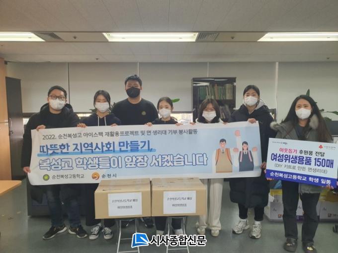 [½Ã»çÁ¾ÇսŹ® = Àå¹Î±Ô ±âÀÚ] ¼øÃµ½Ã(½ÃÀå ³ë°ü±Ô)´Â Áö³ 28ÀÏ ¼øÃµº¹¼º°íµîÇб³ ÇлýÀÚġȸ(ȸÀå ±è¼¼Àº)¿¡¼ ¾î·Á¿î °¡Á¤ÀÇ ¿©¼ºÃ»¼Ò³âÀ» À§ÇÑ À§»ý¿ëǰÀ» Á÷Á¢ ¸¸µé¾î ¼øÃµ½Ã¿¡ ±âŹÇß´Ù°í ¹àÇû´Ù.