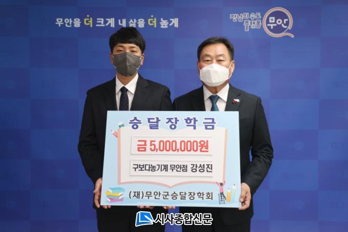 [½Ã»çÁ¾ÇսŹ® = ¿À½ÂÅà ±âÀÚ] ¹«¾È±º(±º¼ö ±è»ê)Àº Áö³ 28ÀÏ ±¸º¸´Ù³ó±â°è ¹«¾ÈÁ¡ °¼ºÁø ´ëÇ¥°¡ Áö¿ªÀÎÀç À°¼ºÀ» À§ÇØ ¼ÒÁßÈ÷ ½á´Þ¶ó¸ç ÀåÇÐ±Ý 500¸¸¿øÀ» ±âŹÇß´Ù°í ¹àÇû´Ù.