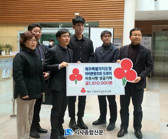 [½Ã»çÁ¾ÇսŹ® = °í¼º¹Î ±âÀÚ] Á¦ÁÖÆ¯º°ÀÚÄ¡µµÃ» °øÁ÷ÀÚ·Î ±¸¼ºµÈ ¸¶¶óÅæ µ¿È£È¸ ¡®µµ¸£¹Ì¡¯(ȸÀå ±è³²¿ë)´Â 30ÀÏ ÀÌ¿ô»ç¶û ¼º±Ý 161¸¸¿øÀ» Á¦ÁÖ»çȸº¹Áö°øµ¿¸ð±Ýȸ¿¡ ±âŹ Çß´Ù.