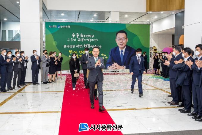 ¼ÛÁ¾¿í ±¤ÁÖÀºÇàÀåÀº ÅðÀӽĿ¡¼ ¡°Ã¹ Á÷ÀåÀÎ ±¤ÁÖÀºÇà¿¡ Çà¿øÀ¸·Î ÀÔÇàÇØ ±¤ÁÖÀºÇà ÃÖÃÊ ÀÚÇàÃâ½Å ÀºÇàÀåÀ» Áö³»±â±îÁö ±¤ÁÖÀºÇà°ú ÇÔ²²ÇÑ 30¿©³âÀÇ »îÀº Àλý¿¡¼ ¹«¾ù°úµµ ¹Ù²Ü ¼ö ¾ø´Â °ªÁø ½Ã°£À̾ú´Ù¡±°í ¿îÀ» ¶¼¸ç, ¹Ï°í µû¶ó¿ÍÁØ Á÷¿øµé°ú ±¤ÁÖÀºÇà¿¡ º¯ÇÔ¾ø´Â ½Å·Ú¿Í ¼º¿øÀ» º¸³»ÁֽŠÁö¿ª¹Î ¹× °í°´¿¡°Ô °¨»çÀÇ ¸¶À½À» ÀüÇß´Ù.