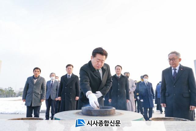 ¿À¿µÈÆ Áö»ç´Â À̳¯ ¿ÀÀü 6½Ã 30ºÐ â¿»ç¿Í ±¹¸³Á¦ÁÖÈ£±¹¿øÀ» ã¾Æ ±¹°¡¿Í ¹ÎÁ·À» À§ÇØ Èñ»ýÇÑ ¼ø±¹¼±¿°ú È£±¹¿µ·ÉÀÇ ¼þ°íÇÑ Á¤½Å°ú À§ÈÆÀ» ±â·È´Ù. ¿ÀÀü 8½Ã¿¡´Â Á¦ÁÖ4‧3ÆòȰø¿øÀ» ¹æ¹®ÇØ 4‧3¿µ·ÉµéÀÇ È¥À» À§·ÎÇϰí, 4․3 ¿ÏÀüÇÑ ÇØ°á°ú 4․3ÀÇ ¼¼°èȸ¦ À§ÇØ ³ë·ÂÇÒ °ÍÀ» ´ÙÁüÇß´Ù.