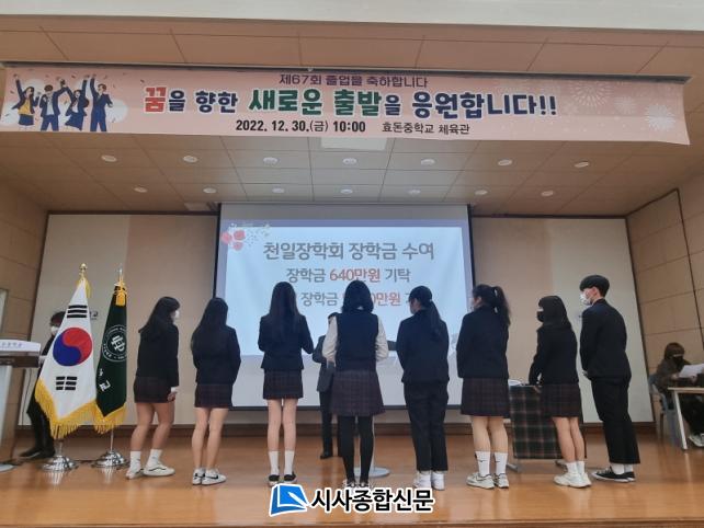 [½Ã»çÁ¾ÇսŹ® = °í¼º¹Î ±âÀÚ] È¿µ·ÁßÇб³(±³Àå ¼Û¹ÌÇý) Á¹¾÷»ýÀΠõÀÏÀåÇÐȸ ±è°ø¼ø(Á¦2ȸ Á¹¾÷)¼±»ýÀº 12¿ù 30ÀÏ Á¦67ȸ Á¹¾÷½ÄÀ» ¸ÂÀÌÇÏ¿© ÀåÇÐ±Ý 640¸¸¿øÀ» ±âŹÇÏ¿© Àü´ÞÇß´Ù.