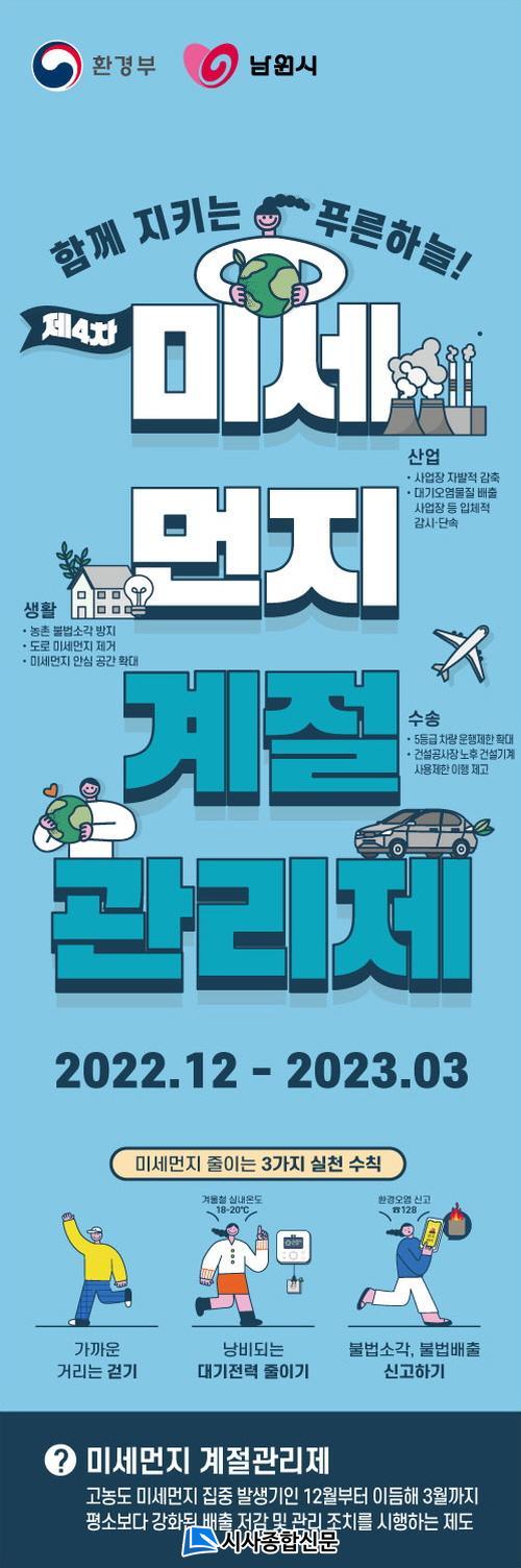 °èÀý°ü¸®Á¦´Â ¹Ì¼¼¸ÕÁö ³óµµ°¡ Æò»ó½ÃÀÇ 1.4~1.8¹è·Î ³ôÀº ½Ã±âÀÎ 12¿ùºÎÅÍ À̵ëÇØ 3¿ù±îÁö °ÈµÈ ¹Ì¼¼¸ÕÁö ¹èÃâ Àú°¨ ¹× °ü¸® Á¶Ä¡¸¦ ½ÃÇàÇÏ´Â Á¦µµÀÌ´Ù. ½Ã´Â À̹ø °èÀý°ü¸®Á¦ ±â°£¿¡ ¼ö¼Û, »ýȰ, »ê¾÷ºÐ¾ß µî 3°³ ºÐ¾ß 10°³ ¼¼ºÎ´ëÃ¥À» ÁýÁß ÃßÁøÇÒ °èȹÀÌ´Ù.