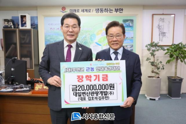 [½Ã»çÁ¾ÇսŹ® = ¿À½ÂÅà ±âÀÚ] ¢ß´ëÀϺ¯»ê°ü±¤°³¹ß(´ëÇ¥ ±èÈ£¼®, ±èÁÖÇÑ)¿¡¼ ºÎ¾È±º ±Ù³óÀÎÀçÀ°¼ºÀç´ÜÀ» ¹æ¹®ÇÏ¿© Áö¿ª ÀÎÀçÀ°¼ºÀ» À§ÇÑ ÀåÇÐ±Ý 2,000¸¸¿øÀ» ±âŹÇß´Ù.