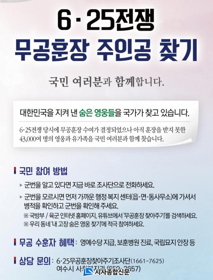 ±¹¹æºÎ´Â À°±ºº»ºÎ¿¡ 6‧25¹«°øÈÆÀåã¾ÆÁÖ±âÁ¶»ç´ÜÀ» Æí¼ºÇϰí Àü±¹ÀÇ Áö¹æÀÚÄ¡´Üü¿Í Çù¾÷ÇØ ¡®³» °íÀå ¿µ¿õ ã±â¡¯ »ç¾÷À» ÃßÁøÇϰí ÀÖ´Ù.