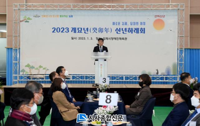 [½Ã»çÁ¾ÇսŹ® = ¿À½ÂÅà ±âÀÚ] ±èÁ¦½Ã ¸ð¾Çȸ°¡ 3ÀÏ Á¤¼ºÁÖ ±èÁ¦½ÃÀå°ú ÀÌ¿øÅà ±¹È¸ÀÇ¿ø, ±è¿µÀÚ ½ÃÀÇȸ ÀÇÀåÀ» ºñ·ÔÇÑ Áö¿ª µµÀÇ¿ø ¹× ½ÃÀÇ¿ø, ±â¾÷ÀÎ, ¾ð·ÐÀÎ, ±â°ü¡¤»çȸ´ÜüÀå µî 200¿© ¸íÀÌ Âü¼®ÇÑ °¡¿îµ¥ 2023³â ½Å³âÇÏ·Êȸ¸¦ °³ÃÖÇß´Ù.