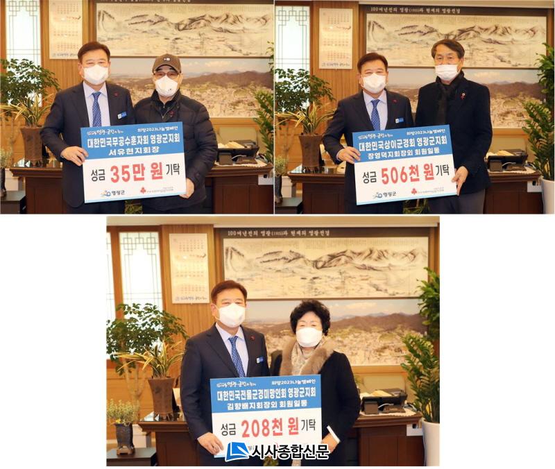 [½Ã»çÁ¾ÇսŹ® = ¿À½ÂÅà ±âÀÚ] ´ëÇѹα¹»óÀ̱º°æÈ¸ ¿µ±¤±ºÁöȸ(ȸÀå À念´ö), ´ëÇѹα¹¹«°ø¼öÈÆÀÚȸ ¿µ±¤±ºÁöȸ(ȸÀå ¼À¯Çö), ´ëÇѹα¹Àü¸ô±º°æ¹Ì¸ÁÀÎȸ ¿µ±¤±ºÁöȸ(ȸÀå ±èÇâ¹è) µî 3°³ º¸ÈÆ´Üü´Â Áö³ 26ÀÏ ¿µ±¤±ºÃ»À» ¹æ¹®ÇØ ¡®Èñ¸Á2023³ª´®Ä·ÆäÀΡ¯ ¼º±Ý ¸ð±Ý¿¡ µ¿ÂüÇϱâ À§ÇØ ¼º±Ý 1,064õ ¿øÀ» ±âŹÇß´Ù.