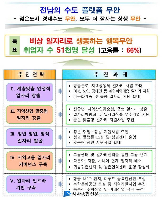 ¹«¾È±ºÀº À̹ø Á¾ÇÕ°èȹ¿¡¼ ¡®ºñ»ó ÀÏÀÚ¸®·Î »ýµ¿ÇÏ´Â Çູ¹«¾È¡¯ÀÇ ½½·Î°Ç ¾Æ·¡ Ãë¾÷ÀÚ ¼ö 5¸¸ 1000¸í, °í¿ë·ü 66% ´Þ¼ºÀ» ¸ñÇ¥·Î ¡ã°èÃþ¸ÂÃã ¾ÈÁ¤Àû ÀÏÀÚ¸® âÃâ, ¡ãÁö¿ª»ê¾÷ ¸ÂÃãÇü ÀÏÀÚ¸® âÃâ, ¡ãû³ââ¾÷¡¤Ã¢Á÷ ÀÏÀÚ¸® ¹ß±¼, ¡ãÁö¿ª°í¿ë ÀÏÀÚ¸® °Å¹ö³Í½º ±¸Ãà, ¡ãÀÏÀÚ¸® ÀÎÇÁ¶ó ±â¹Ý ±¸Ãà µî 5°³ÀÇ ÃßÁøÀü·«À» Áß½ÉÀ¸·Î 231°³ÀÇ ÀÏÀÚ¸® °ü·Ã »ç¾÷À» ÃßÁøÇÑ´Ù.