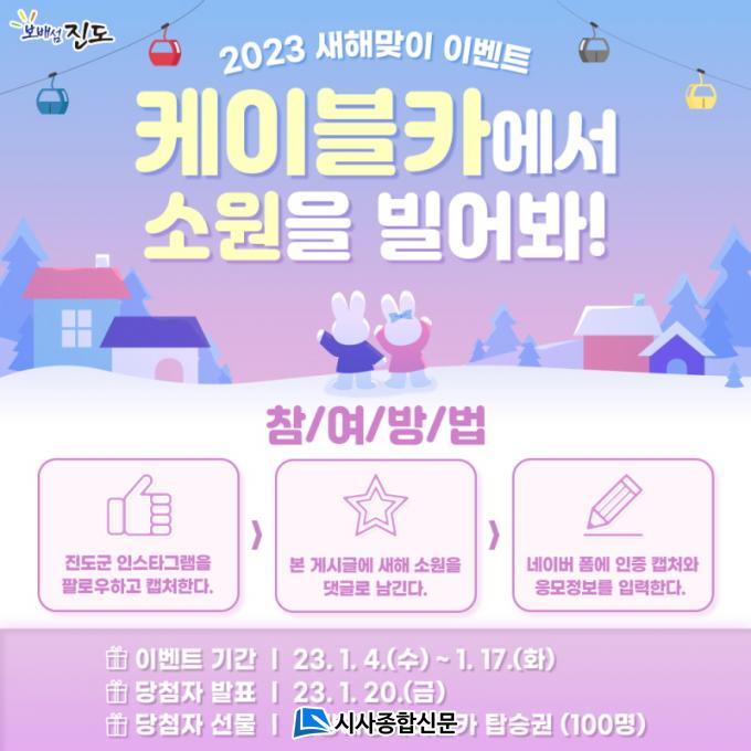 Áøµµ±º °ø½Ä ÀνºÅ¸±×·¥ÀÇ À̺¥Æ® °Ô½Ã±Û¿¡ 2023³â »õÇØ ¼Ò¿øÀ» ´ñ±Û·Î ³²±â°í, °Ô½Ã±ÛÀÇ ÁÁ¾Æ¿ä, Áøµµ±º ÀνºÅ¸±×·¥ ÆÈ·Î¿ì ½Åû, Ä£±¸¼Òȯ±îÁö ¿Ï·áÇÑ Âü°¡ÀÚ¿¡°Ô ¸í·®ÇØ»óÄÉÀ̺íÄ« ž½Â ±³È¯±ÇÀ» Á¦°øÇÑ´Ù.