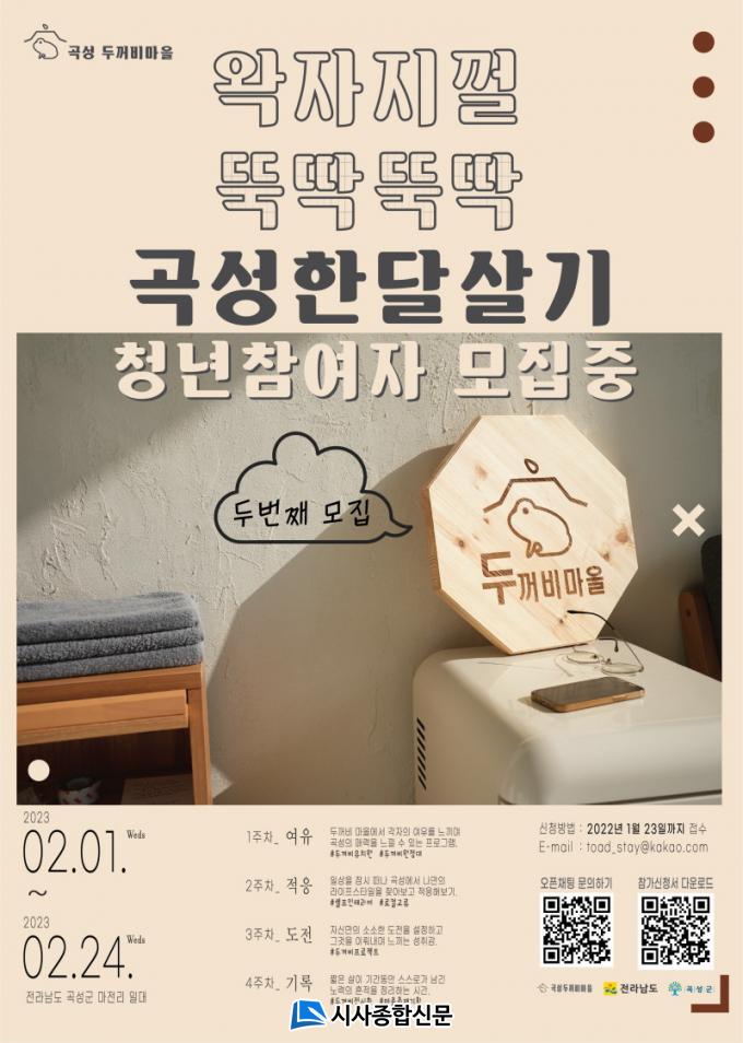 µÎ²¨ºñ¸¶À» 1±âÀÇ ½ÃÀÛ°ú ÇÔ²² 2±â Âü¿©ÀÚ ¸ðÁýµµ ÁøÇàµÇ°í ÀÖ´Ù. ½Åû ±â°£Àº 1¿ù 6ÀϺÎÅÍ 1¿ù 23ÀϱîÁö¸ç, 2±â ÇÁ·Î±×·¥Àº 2¿ù 1ÀϺÎÅÍ 24ÀϱîÁö ÁøÇàµÈ´Ù. µÎ²¨ºñ¸¶À» û³âµéÀÇ ´Ù¾çÇÑ È°µ¿ ¼Ò½Ä°ú 2±â Áö¿ø ¹æ¹ýÀº ÀνºÅ¸±×·¥ @toad_stay¿¡¼ È®ÀÎÇÒ ¼ö ÀÖ´Ù.