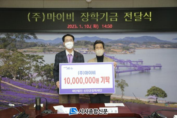 [½Ã»çÁ¾ÇսŹ® = ¿À½ÂÅà ±âÀÚ] ¢ß¸¶À̺ñ(´ëÇ¥ÀÌ»ç ¼Õ¹Î¼ö) ÀÓÁ÷¿øµéÀº 10ÀÏ ½Å¾È±ºÃ»À» ¹æ¹®ÇØ ¾î·Á¿î ÇлýµéÀ» À§ÇØ ½á´Þ¶ó¸ç (Àç)½Å¾È±ºÀåÇÐÀç´Ü(ÀÌ»çÀå ¹Ú¿ì·®)¿¡ 1õ¸¸¿øÀÇ ÀåÇбÝÀ» Àü´ÞÇß´Ù.
