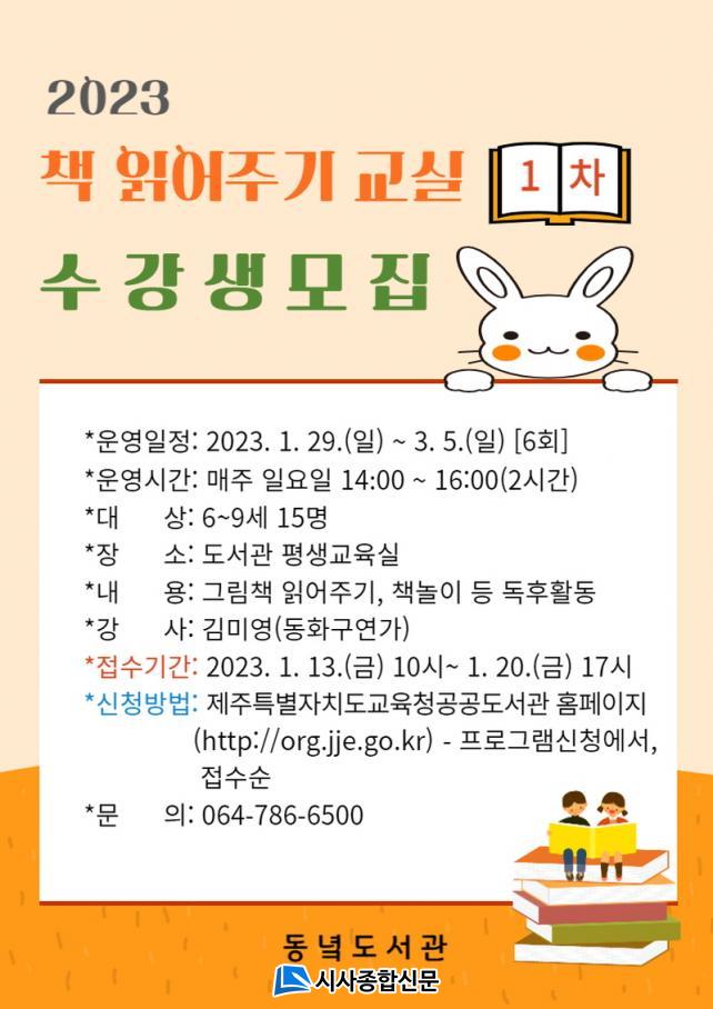 ÇÑÆí, 1¿ù 29ÀϺÎÅÍ 3¿ù 5ÀϱîÁö ¸ÅÁÖ ÀÏ¿äÀÏ 14½ÃºÎÅÍ 2½Ã°£ µ¿¾È µ¿³èµµ¼°ü Æò»ý±³À°½Ç¿¡¼ ÃÑ 6ȸ ¿î¿µµÇ¸ç, ¼ö°»ýÀº 1¿ù 13ÀÏ ¿ÀÀü 10½ÃºÎÅÍ 1¿ù 20ÀÏ 17½Ã±îÁö Á¦ÁÖÆ¯º°ÀÚÄ¡µµ±³À°Ã» °ø°øµµ¼°ü ȨÆäÀÌÁö(