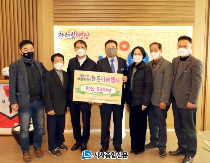 | ¿µ±¤±º Çѵ·Çùȸ, ¼³¸ÂÀÌ µÅÁö°í±â ³ª´®Çà»ç ÁøÇà Çѵ·Çùȸ ¿µ±¤±ºÁöºÎ Çѵ· 530kg ¿µ±¤±º¿¡ ±âŹ |