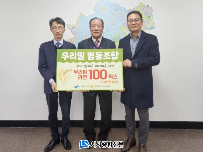[½Ã»çÁ¾ÇսŹ® = ¿À½ÂÅà ±âÀÚ] ¿ì¸®¹Ð Çùµ¿Á¶ÇÕ(Á¶ÇÕÀå õÀÍÃâ)ÀÌ Áö³ 12ÀÏ ±¤»ê±¸Ã»¿¡¼ Àü´Þ½ÄÀ» °®°í Áö¿ª µ¹º½ ÀÌ¿ôÀÇ µû¶æÇÑ ¼³ ¸íÀýÀ» À§ÇØ ¿ì¸®¹Ð ¶ó¸é 100»óÀÚ(300¸¸ ¿ø »ó´ç)¸¦ Åõ°Ô´õ±¤»ê ³ª´®¹®ÈÀç´Ü¿¡ ±âŹÇß´Ù. ¿ì¸®¹Ð Çùµ¿Á¶ÇÕÀÌ ÈÄ¿øÇÑ ¶ó¸éÀº ±¤»ê±¸ 21°³ µ¿ µ¹º½ ÀÌ¿ô¿¡°Ô Àü´ÞµÉ ¿¹Á¤ÀÌ´Ù.