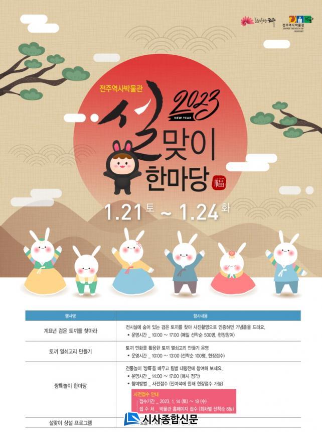 ÀüÁֽô ¿À´Â 21ÀϺÎÅÍ 24ÀϱîÁö 4Àϰ£ ÀüÁÖ¿ª»ç¹Ú¹°°ü°ú °æ±âÀü ³» ¾îÁø¹Ú¹°°ü¿¡¼ ¼³ ¿¬ÈÞ¸¦ ¸Â¾Æ ¼³³¯ ¼¼½Ãdz¼Ó°ú ÀüÅ빮ȸ¦ °æÇèÇÒ ¼ö ÀÖ´Â ¡®2023 ¼³¸ÂÀÌ ÇѸ¶´ç¡¯À» ¿î¿µÇÑ´Ù°í 13ÀÏ ¹àÇû´Ù.