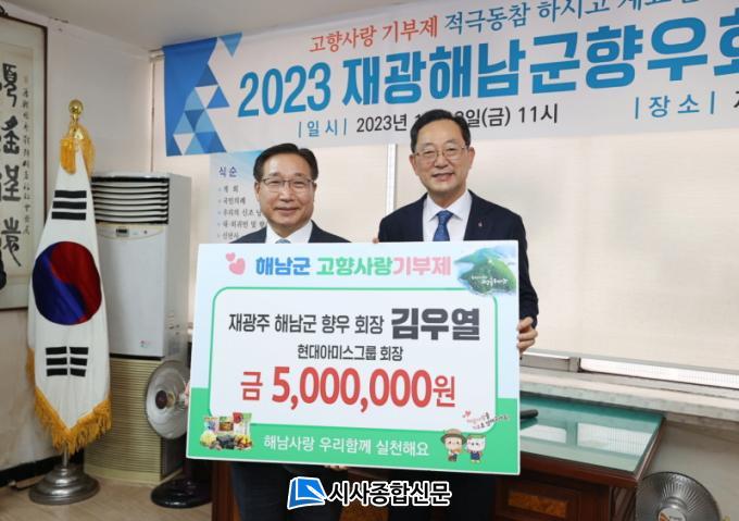 Áö³ 13ÀÏ À籤 ÇØ³²±º Çâ¿ìÀÎ ±è¿ì¿ Çö´ë¾Æ¹Ì½º(ÁÖ) ´ëÇ¥À̻簡 ÇØ³²±º¿¡ °íÇâ»ç¶û±âºÎ±Ý 500¸¸¿øÀ» ±âŹÇß´Ù. ÇØ³²±º È»ê¸é Ãâ½ÅÀÎ ±è¿ì¿ ȸÀåÀº ±¤ÁÖ¿¡¼ ¼Ò¹æ½Ã¼³°ü¸®¿Í Àü±â¾ÈÀü°ü¸®´ëÇà, °æºñ¡¤Ã»¼Ò¿ë¿ª µî °øµ¿ÁÖÅðü¸®¾÷üÀÎ Çö´ë¾Æ¹Ì½º(ÁÖ)¸¦ ¿î¿µÇϰí ÀÖ´Ù.