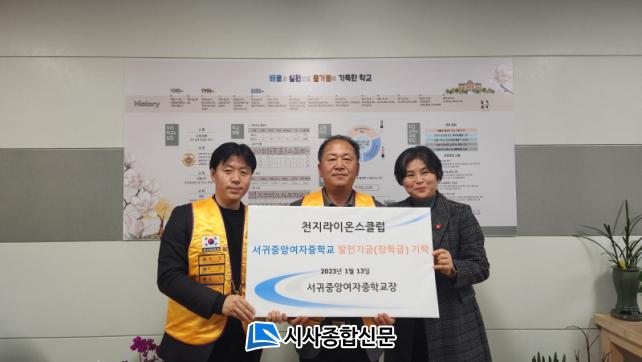 [½Ã»çÁ¾ÇսŹ® = °í¼º¹Î ±âÀÚ] ¼±ÍÁß¾Ó¿©ÀÚÁßÇб³(±³Àå °¿¬½É)´Â 1¿ù 13ÀÏ ¼±ÍÆ÷õÁö¶óÀ̿½ºÅ¬·´(ȸÀå ±è½ÂÁÖ)À¸·ÎºÎÅÍ Çб³¹ßÀü±â±Ý(ÀåÇбÝ) 100¸¸¿øÀ» ±âŹ¹Þ¾Ò´Ù.