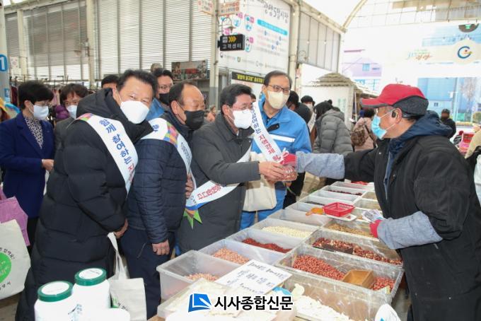 Á¤½ÃÀåÀº 1¿ù 16ÀÏ ±¤¾ç5ÀϽÃÀå°ú ±¤¾ç¸ÅÀϽÃÀåÀ» Â÷·Ê·Î ¹æ¹®ÇÏ¿©, ÁغñÇÑ ¿Â´©¸®»óǰ±ÇÀ¸·Î Á÷Á¢ Á¦¼ö¿ëǰÀ» ±¸ÀÔÇÏ°í »óÀεé°ú ´ëȸ¦ ³ª´©¸ç ¾î·Á¿òÀ» °Þ´Â ÀüÅë½ÃÀå »óÀεéÀ» °Ý·ÁÇß´Ù.
