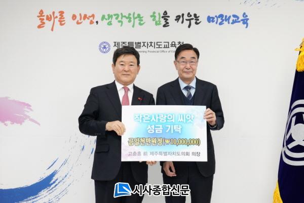 [½Ã»çÁ¾ÇսŹ® = °í¼º¹Î ±âÀÚ] °íÃæÈ« îñ Á¦ÁÖÆ¯º°ÀÚÄ¡µµÀÇȸ ÀÇÀåÀÌ 1¿ù 17ÀÏ(È)¡®ÀÛÀº »ç¶ûÀÇ ¾¾¾Ñ¡¯¼º±ÝÀ¸·Î 1õ¸¸¿øÀ» ±âŹÇß´Ù.