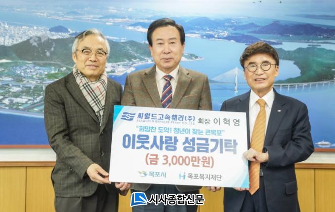 [½Ã»çÁ¾ÇսŹ® = ¿À½ÂÅà ±âÀÚ] ¸ñÆ÷-Á¦ÁÖ, Áøµµ-Á¦ÁÖ ±¸°£À» ¿îÇ×ÇÏ´Â ¾¾¿ùµå°í¼ÓÈѸ®(ÁÖ) ÀÌÇõ¿µ ȸÀåÀÌ Áö³ 17ÀÏ ¸ñÆ÷ º¹ÁöÀç´Ü(ÀÌ»çÀå °Ã¶¼ö)¿¡ ÀÌ¿ô»ç¶û ¼º±Ý 3000¸¸¿øÀ» ±âŹÇß´Ù.