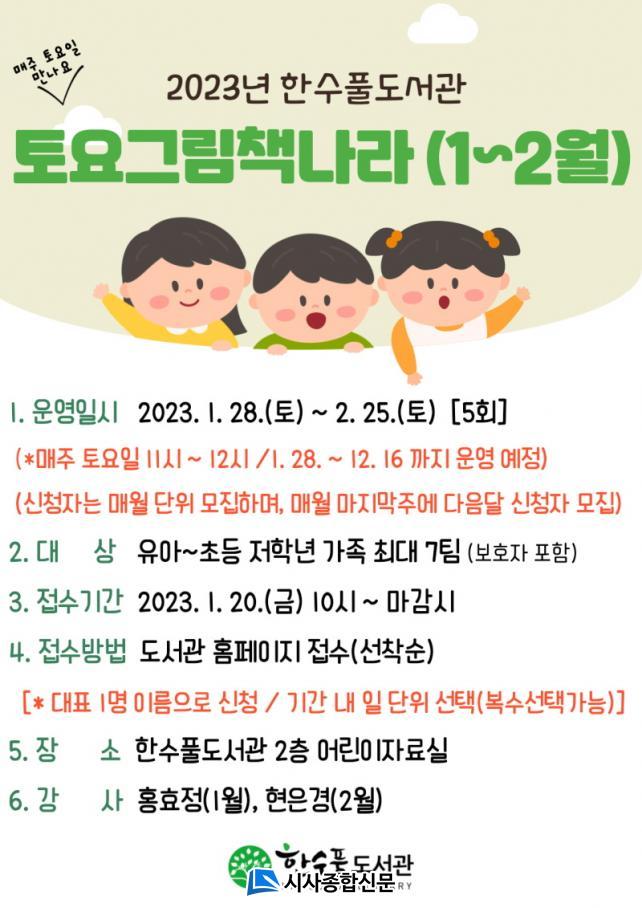 | ÇѼöÇ®µµ¼°ü, 2023³â Åä¿ä±×¸²Ã¥³ª¶ó(1~2¿ù)Âü°¡ÀÚ ¸ðÁý |