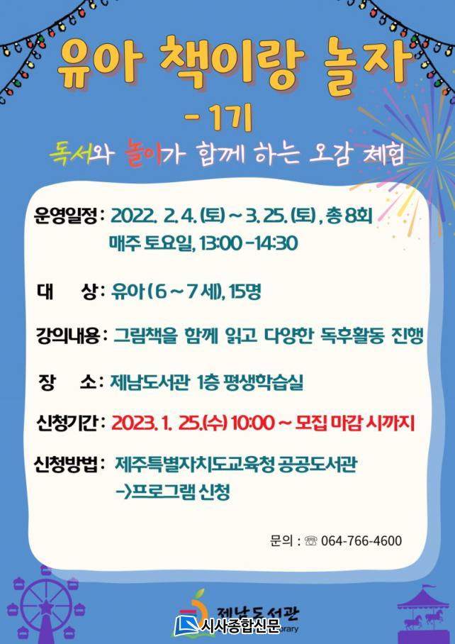 | Á¦³²µµ¼°ü, 2023³â À¯¾Æ Ã¥À̶û ³îÀÚ 1±â ¼ö°»ý ¸ðÁý ¾È³» |