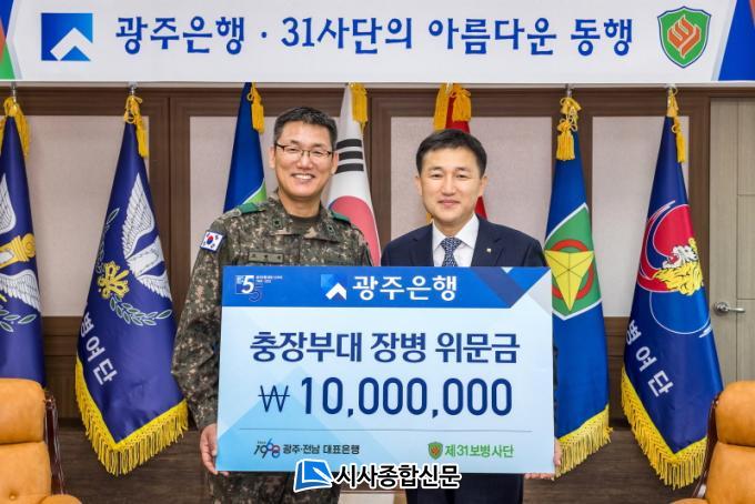 [½Ã»çÁ¾ÇսŹ® = ¿À½ÂÅà ±âÀÚ] ±¤ÁÖÀºÇà(ÀºÇàÀå °íº´ÀÏ)Àº ÃÖ±Ù Áö¿ª ÇâÅäºÎ´ëÀÎ Á¦31º¸º´»ç´Ü(»ç´ÜÀå ¿Àº´¼®)À» ¹æ¹®ÇØ ±ººÎ´ë À庴µéÀÇ ³ë°í¿¡ °¨»çÀÇ ¶æÀ» ´ã¾Æ 1õ¸¸¿øÀÇ À§¹®±ÝÀ» Àü´ÞÇß´Ù°í ¹àÇû´Ù.