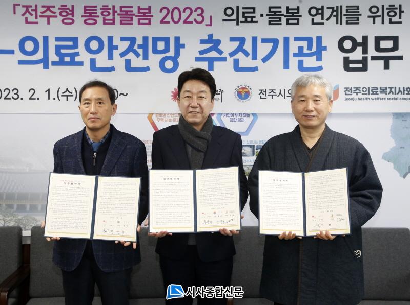 ½Ã´Â 1ÀÏ ÀüÁÖ½ÃÀå½Ç¿¡¼ ¿ì¹ü±â ÀüÁÖ½ÃÀå°ú Á¤°æÈ£ ÀüÁÖ½ÃÀÇ»çȸÀå, ±è±ÇÈñ ÀüÁÖÀǷẹÁö»çȸÀûÇùµ¿Á¶ÇÕ ÀÌ»çÀå, ±è½Å¼± ÀüÁֽú¸°Ç¼ÒÀå µîÀÌ Âü¼®ÇÑ °¡¿îµ¥ ¡®ÀüÁÖÇü ÅëÇÕµ¹º½ 2023¡¯ÀÇ °Ç°-ÀÇ·á¾ÈÀü¸Á »ç¾÷ ÃßÁøÀ» À§ÇÑ ¾÷¹«Çù¾àÀ» ü°áÇß´Ù.