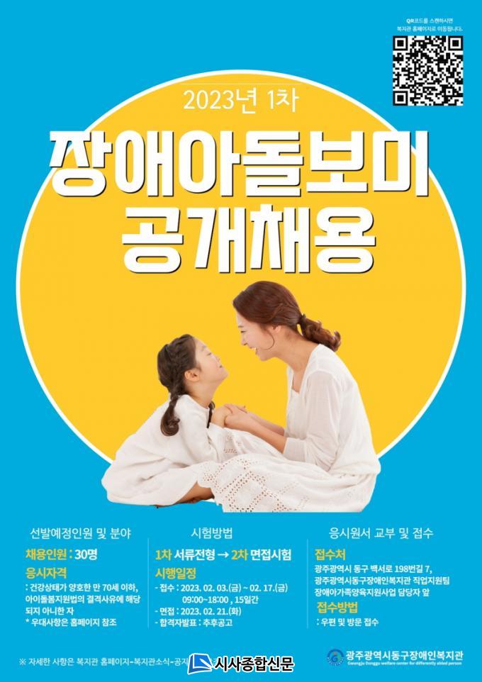 | ±¤ÁÖ±¤¿ª½Ãµ¿±¸Àå¾ÖÀκ¹Áö°ü, Àå¾Ö¾Æµ¹º¸¹Ì °ø°³ ä¿ë 2¿ù 17ÀϱîÁö...15Àϰ£ Á¢¼ö |