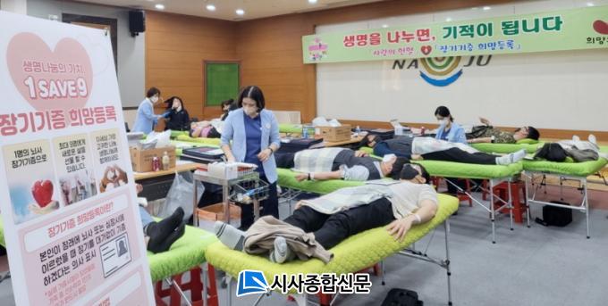 ³ªÁֽô 2ÀÏ ½Ãû»ç ´ëȸÀǽǿ¡¼ ´ëÇÑÀû½ÊÀÚ»ç ±¤ÁÖ¡¤Àü³² Ç÷¾×¿ø°ú °øµ¿À¸·Î ¡®ÇåÇ÷ ¹× Àå±â±âÁõ Èñ¸Á µî·Ï¡¯ Çà»ç¸¦ °¡Á³´Ù°í ¹àÇû´Ù. À̳¯ ÇåÇ÷¿¡´Â ¿ÀÀü 9½ÃºÎÅÍ ¿ÀÈÄ 4½Ã±îÁö °ø¹«¿ø 110¸í, ½Ã¹Î 12¸íÀÌ µ¿ÂüÇß´Ù.